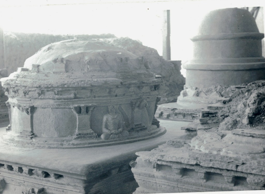 The following images show the state of the things at the stupa during the summer of 1973. Most of the figures had been vandalized, only the bases are left on many.