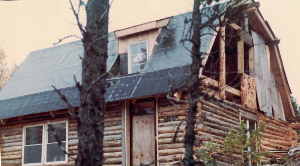 The first two years we made do with tar paper roofing. It kept us dry until we could afford shingles. It was quite a job tar papering that steep roof by myself!
