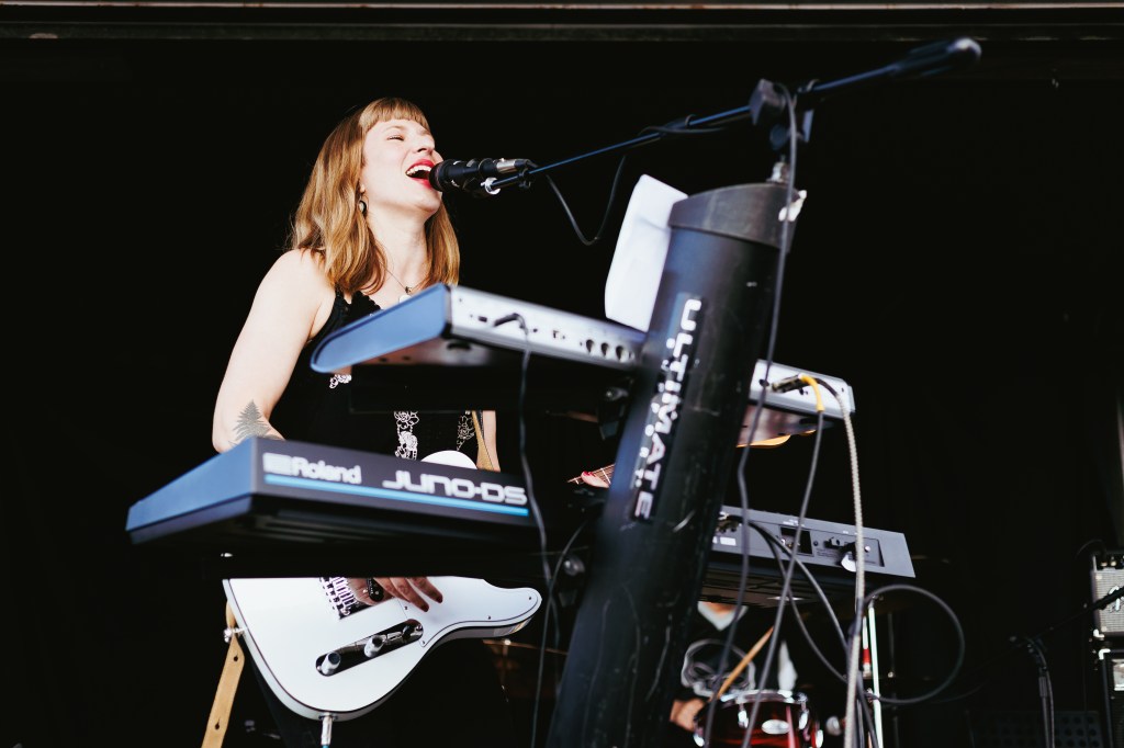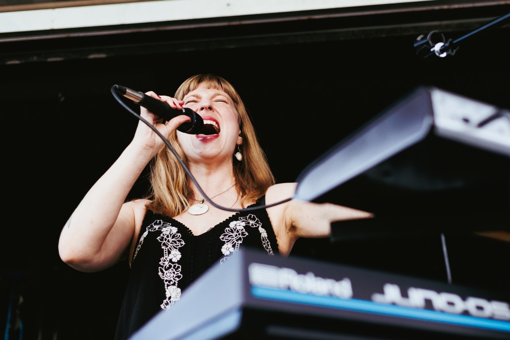 Lesley Rostron, lead singer, keys, guitar.