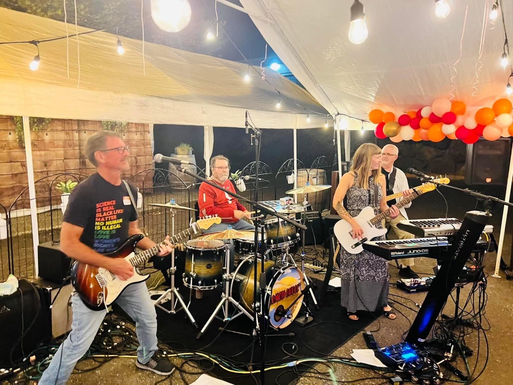 We performed as a quintet in 2018, with Jim Nelson, then Michael Harris joining us on guitars. From 2019 on we were a quartet. Jon Grover played drums until he was replaced by Gary Snyder when we began performing again after a Covid pandemic hiatus. Doug Hyldahl played bass the entire time.