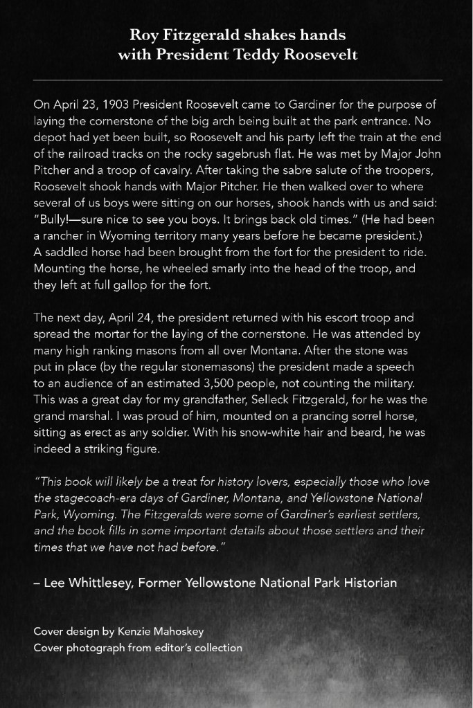 “This book will likely be a treat for history lovers, especially those who love the stagecoach-era days of Gardiner, Montana, and Yellowstone Park, Wyoming. The Fitzgeralds were some of Gardiner’s earliest settlers, and the book fills in some important details about those settlers and their times that we have not had before” —Lee Whittlesey, Former Yellowstone National Park historian, author of “Gateway to Yellowstone,” and other books of Montana history.